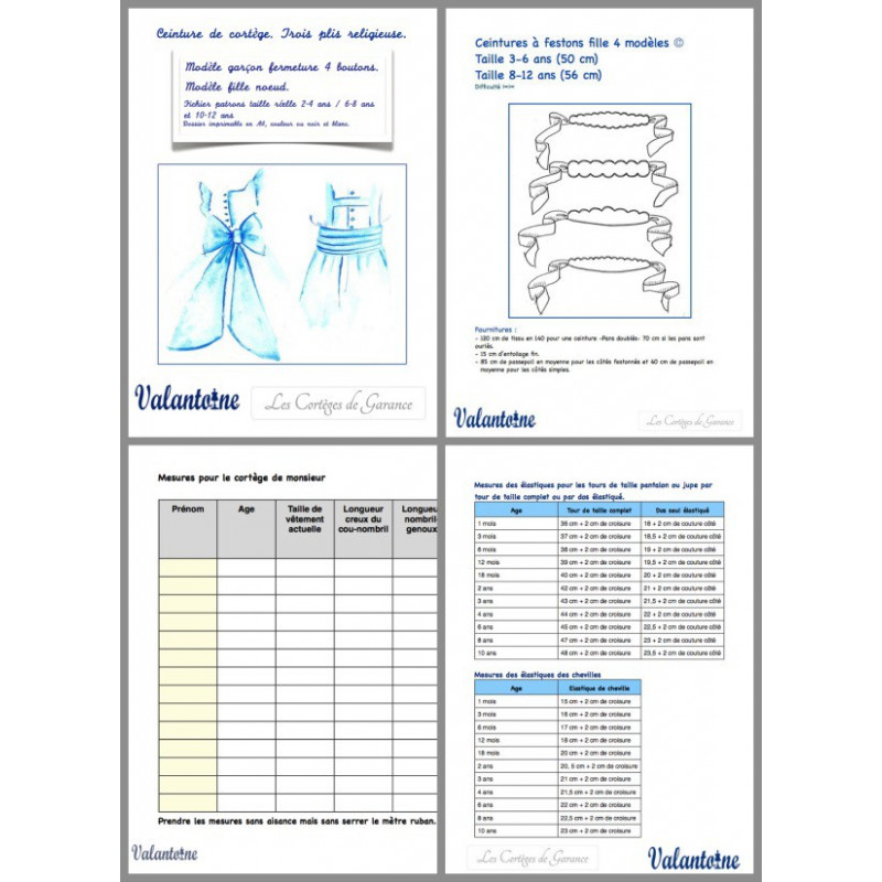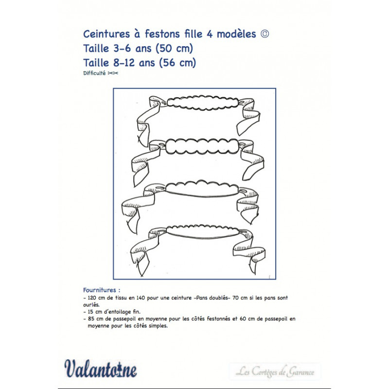 Les patrons de ceintures simple et 3 plis, Tailles 2 à 12 ans: