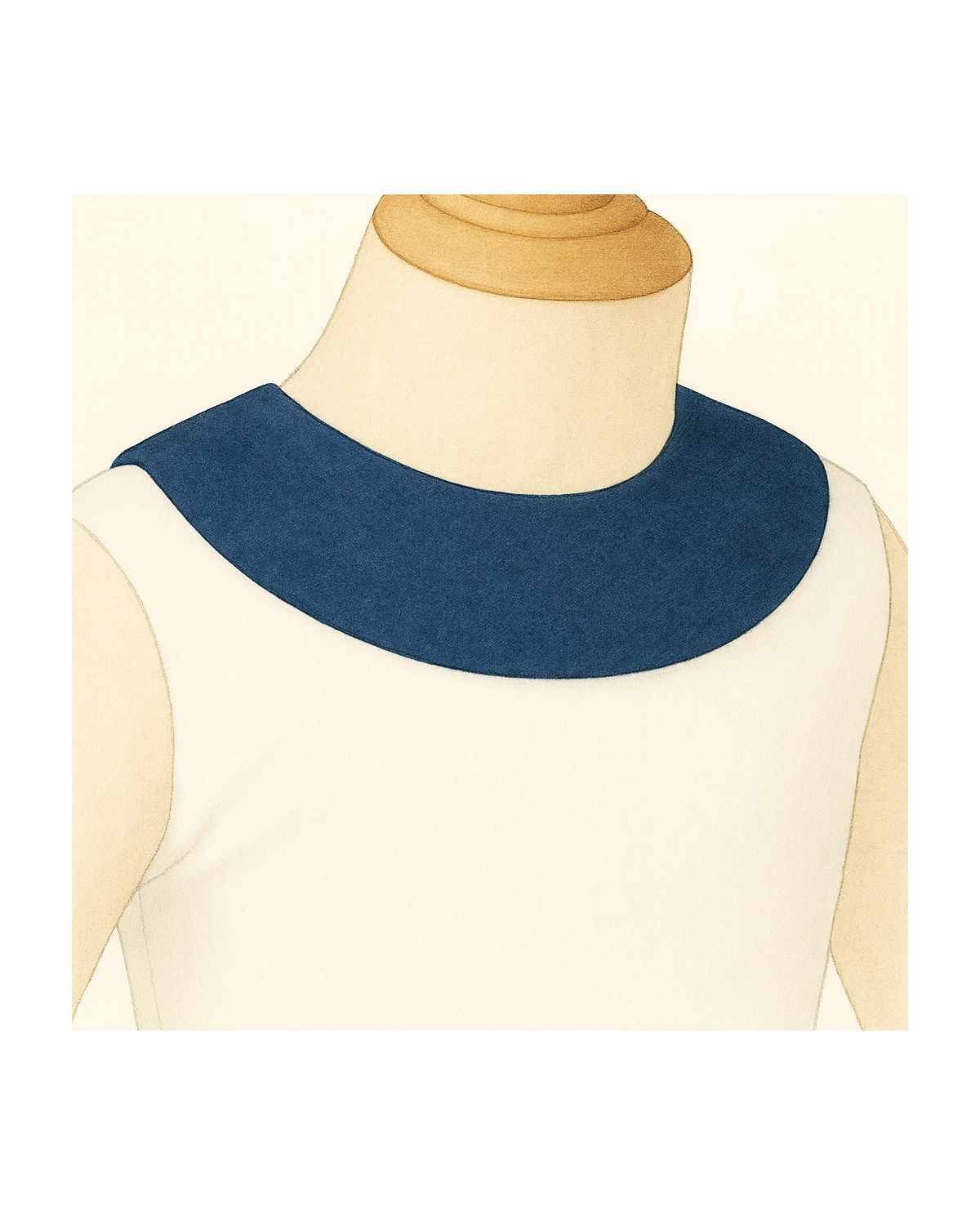 Ce patron de col rond plat est utilisable en option sur de nombreuses robes Dauphin-Dauphine (référez-vous aux produits compatibles sous la fiche produit).
