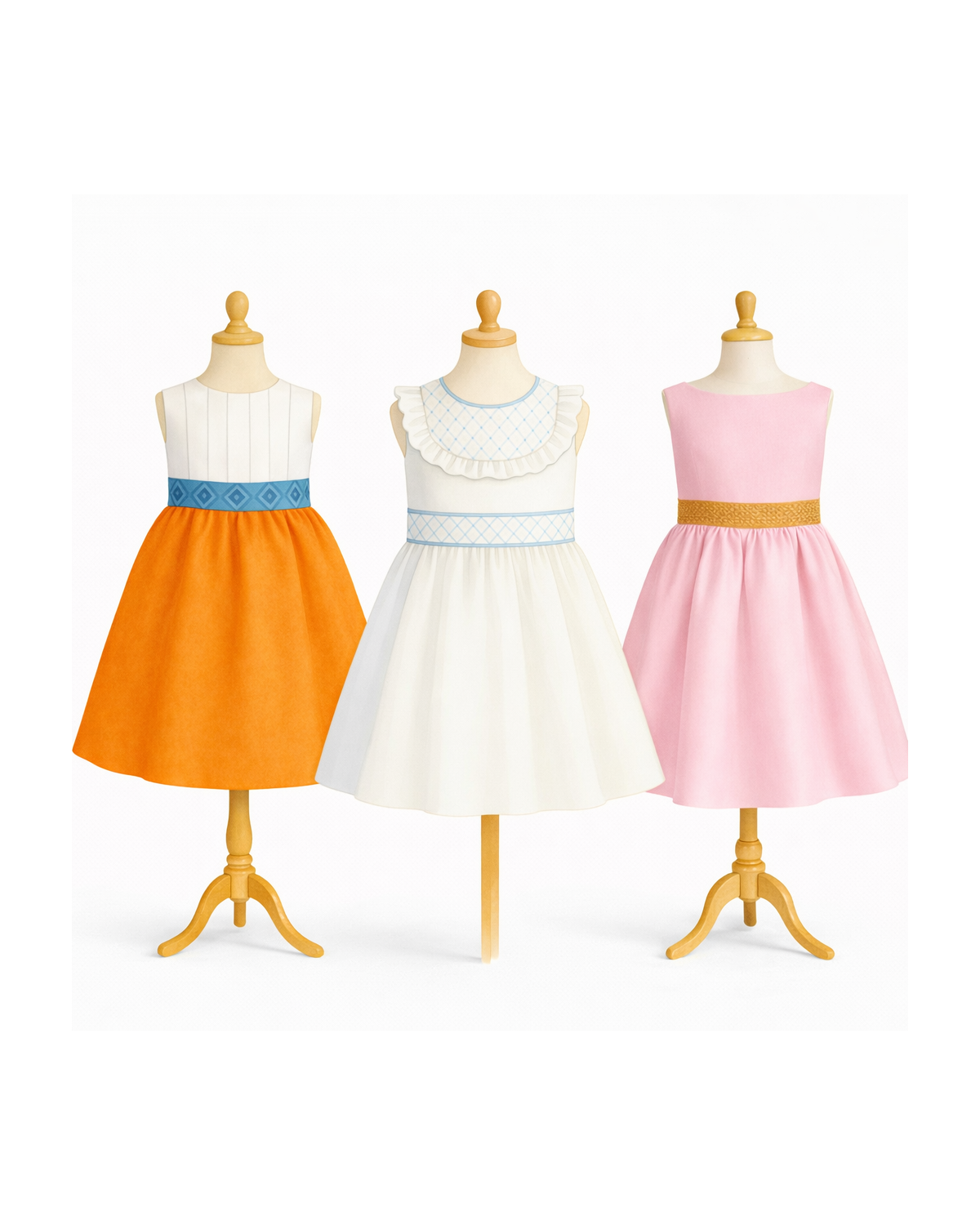Combinez les patrons entre eux et laissez votre imagination s'envoler: ils se feront robe de cérémonie ou de cortège, robe du quotidien ou du dimanche, robe de Première Communion ou de Princesse !