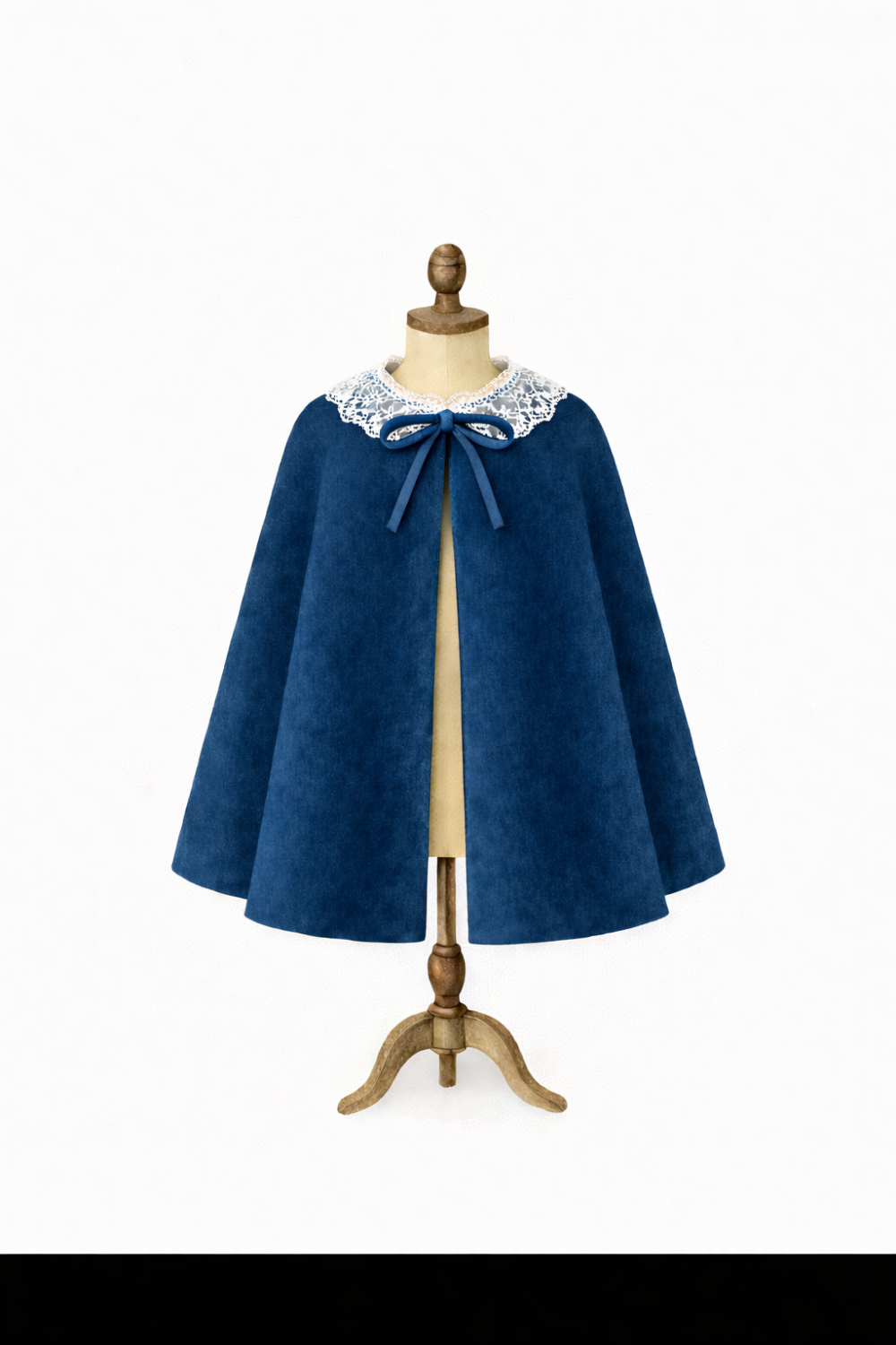 Cette cape est mixte et peut être réalisée pour les demoiselles avec un volant ton sur ton, de couleur ou en dentelle. La fermeture peut se faire bouton ou ruban.