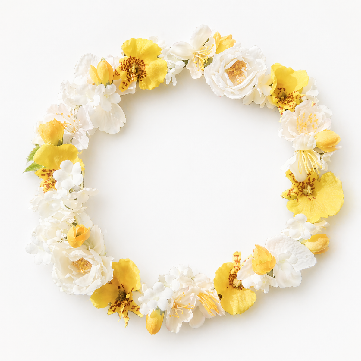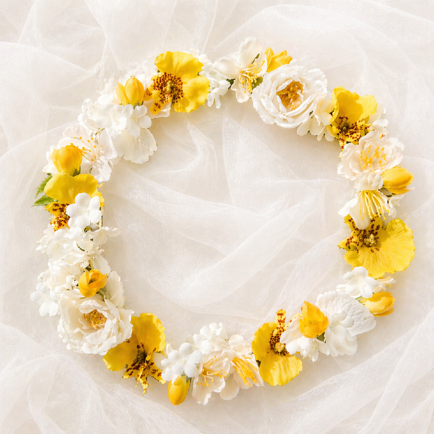 Une couronne à la fois fraîche, lumineuse et raffinée, pensée pour rehausser une jolie tenue.