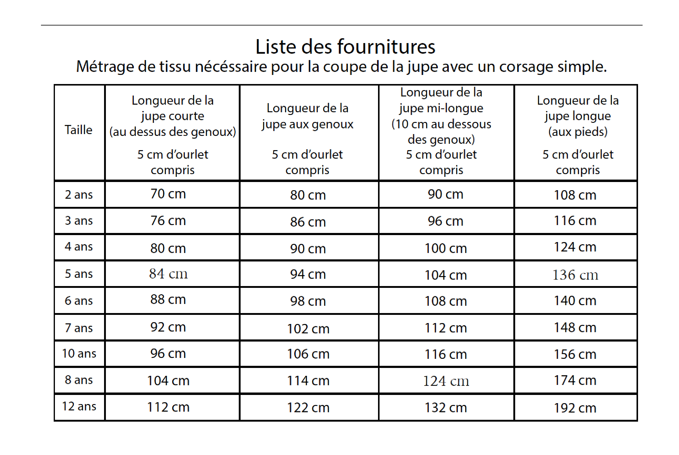 Patron en taille réelle, coutures comprises, disponible en 2 - 3 - 4 - 5 - 6 - 7 - 8 - 10 et 12 ans
