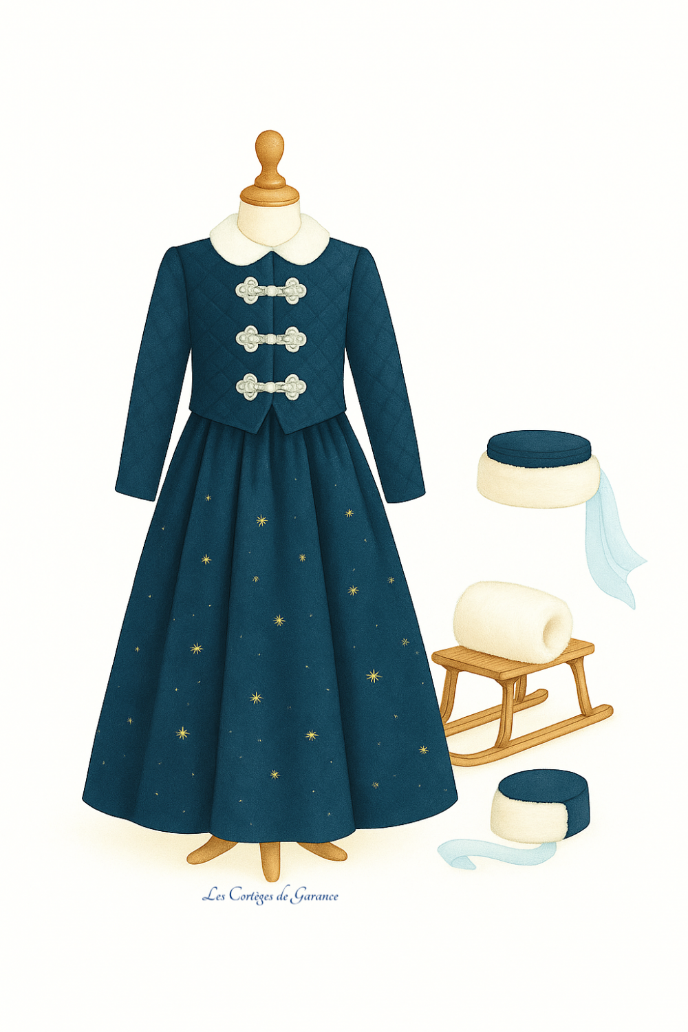 - Le manchon et la toque en fourrure sont des suggestions de présentation.