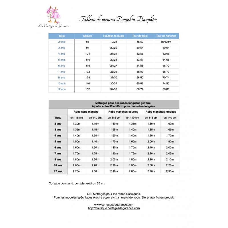 La fiche de montage très détaillée et illustrée vous propose une finition bais ou doublée, au choix, et une jupe en 4 longueurs différentes: courte, genoux, mi-longue ou longue.