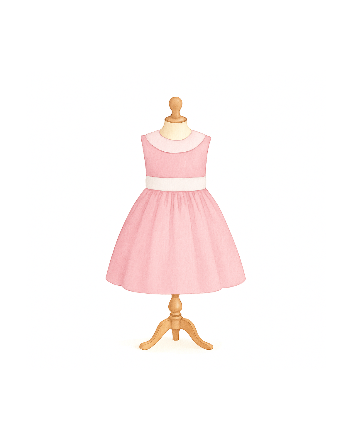 Son rose poudré, subtil et lumineux, enveloppe la silhouette avec grâce. Le corsage épuré, rehaussé d’un col arrondi délicat, apporte une élégance toute classique, tandis que la taille marquée par une ceinture claire (non incluse) structure la robe avec justesse.